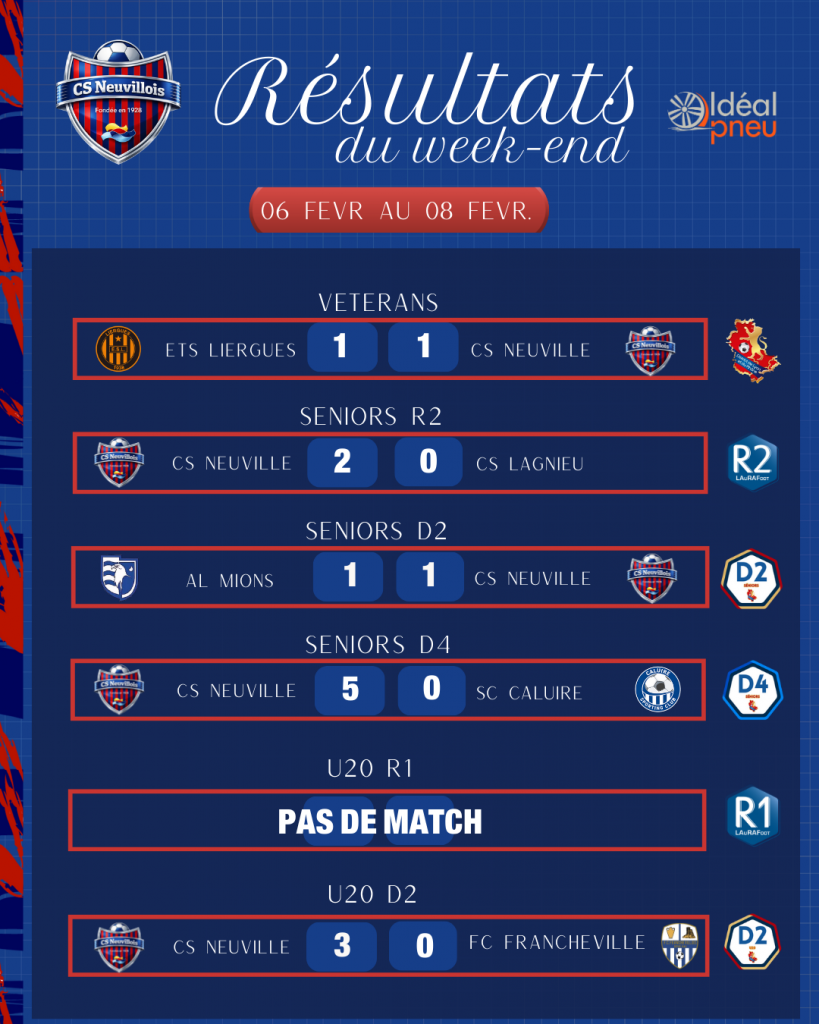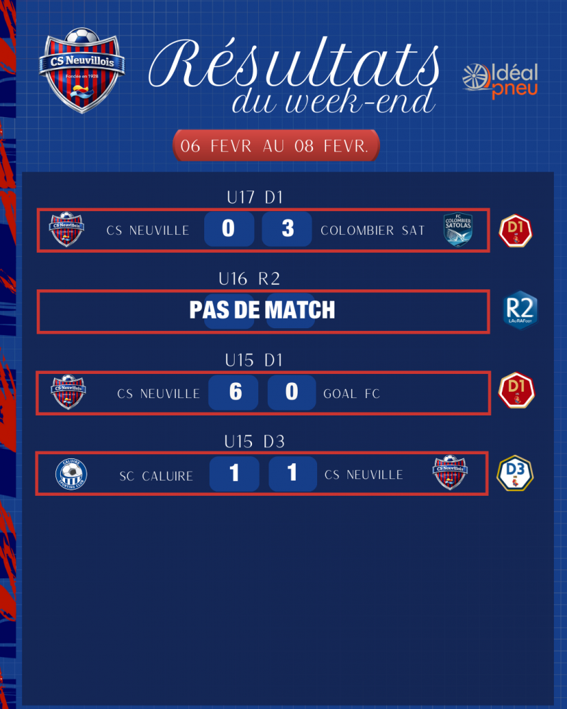 RÉSULTATS DU WEEK-END DU 06 AU 08 FEVR.
