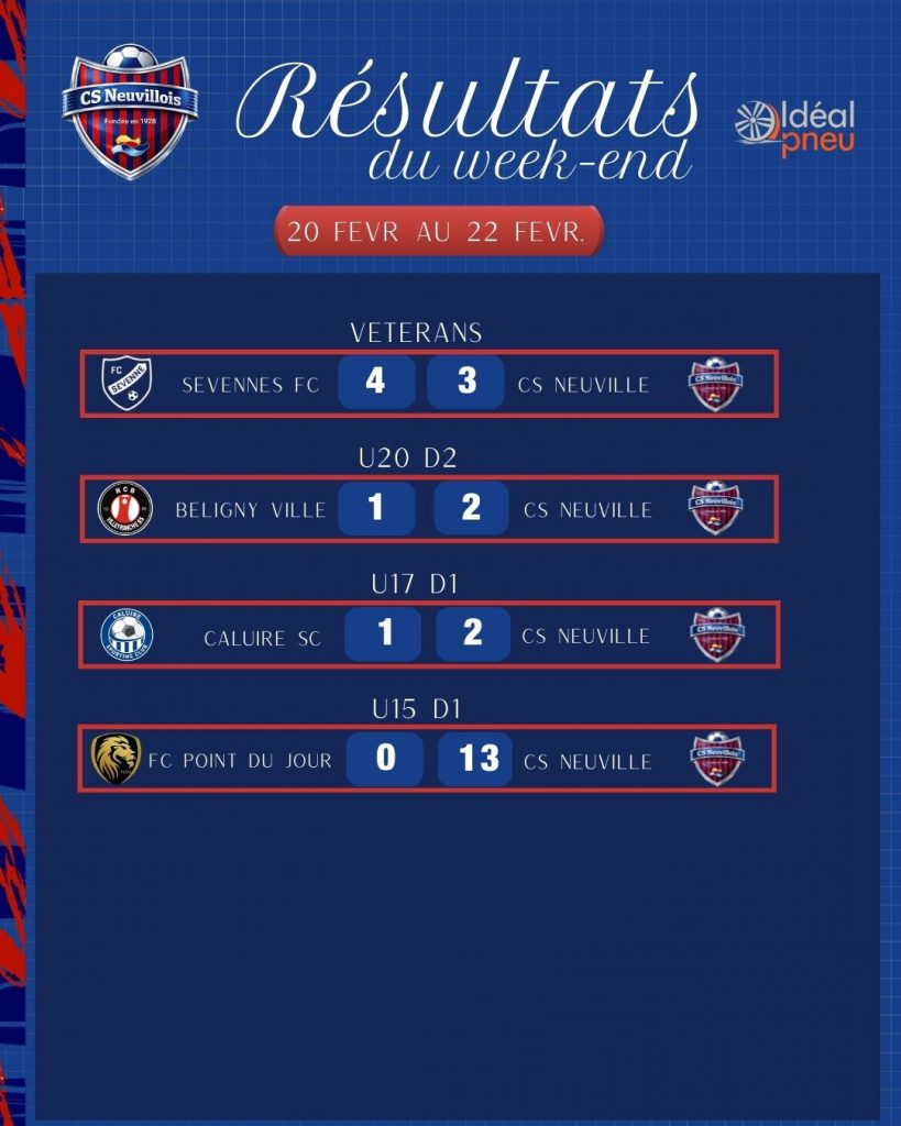 RÉSULTATS DU WEEK-END DU 22 AU 24 FEVR.